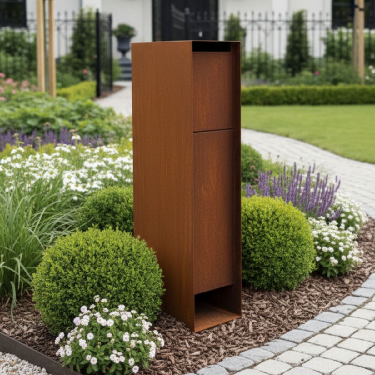 ¿Buscas una solución fiable para el envío de tus paquetes? Imagina: todos tus paquetes entregados de forma segura y sin retrasos, incluso cuando no estás en casa. Hazlo realidad con el buzón para paquetes Geroba Pakun de acero Corten. Este robusto buzón combina un aspecto elegante y natural con una durabilidad inigualable, para que puedas disfrutar de años de entrega de paquetes sin preocupaciones.