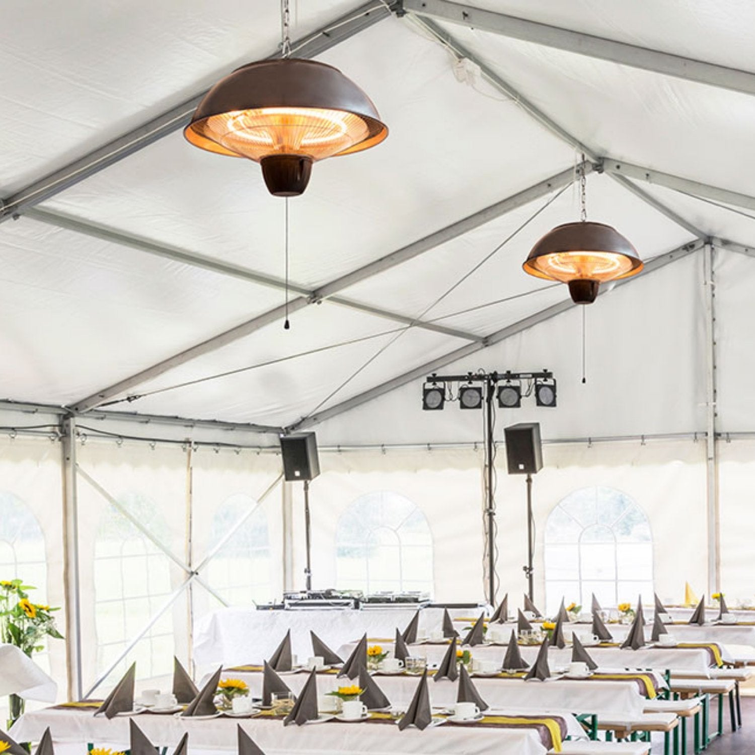 El calefactor de patio es fácil de instalar gracias a la cadena incluida. Puede colgarlo del techo o en una carpa para fiestas, convirtiéndolo en un complemento elegante y moderno para su espacio exterior. Mide 33 x 41 x 41 cm (alto x ancho x profundo), lo que lo convierte en una solución de calefacción compacta pero potente.