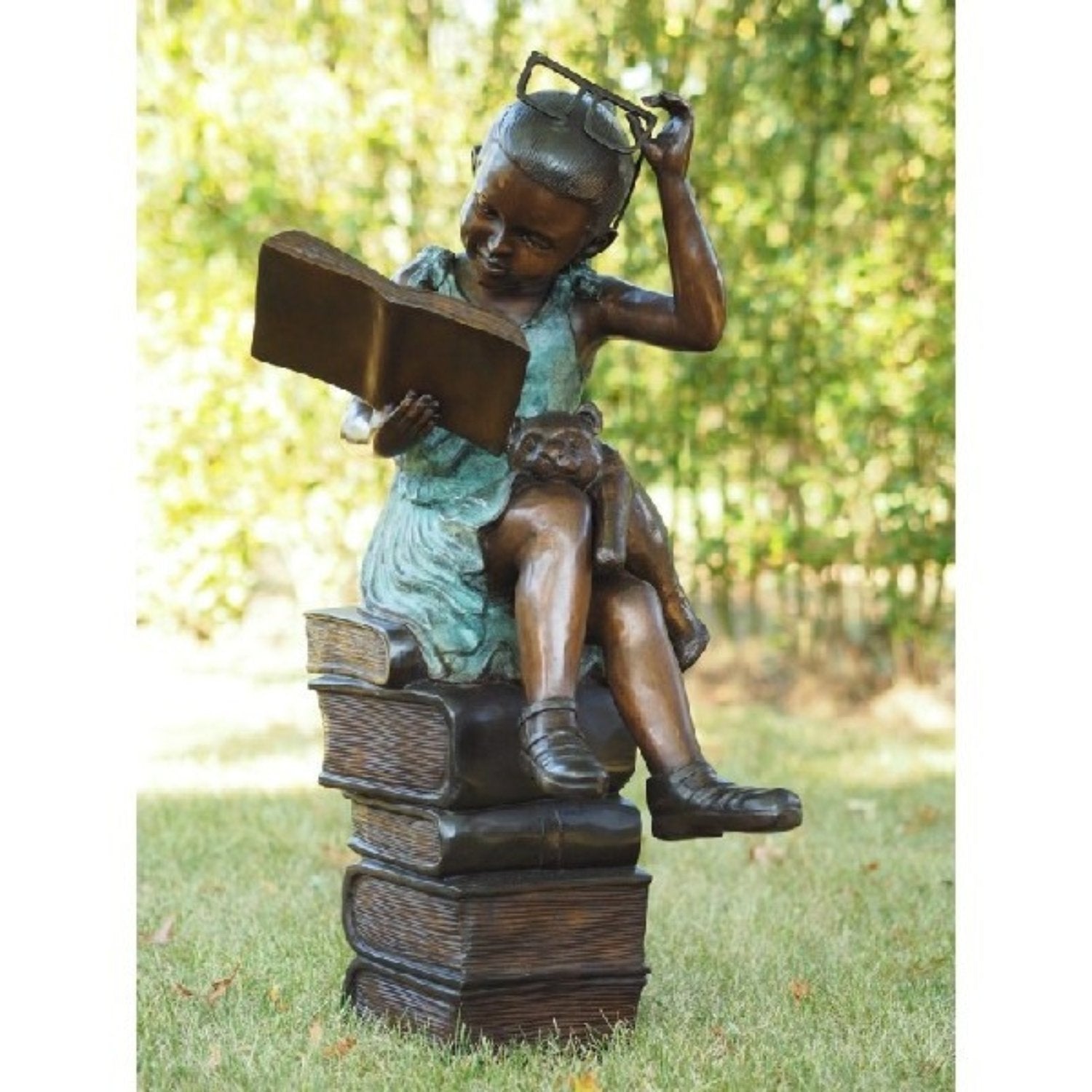 La Estatua de Bronce de la Niña Leyendo con Gafas, 94x51x54cm (AltoxAnchoxProfundidad), se distingue por su vibrante pátina, obtenida mediante un cuidadoso proceso químico que transforma el color amarillo o cobrizo natural del bronce en ricos tonos de marrón oscuro, verde o negro. Esto le da a cada estatua una apariencia única, convirtiéndola en el centro de atención de cualquier espacio. Ya sea en interiores o exteriores, sigue siendo una obra de arte impactante.