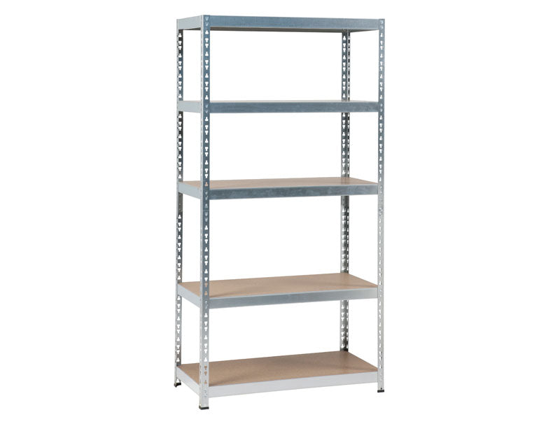 Este robusto estante está equipado con cinco robustos estantes de tablero de fibra con certificación FSC®, cada uno con una capacidad de carga máxima de 180 kg. Con una capacidad de carga total de 900 kg, este estante ofrece la resistencia suficiente para almacenar de forma segura herramientas, maquinaria y suministros. Gracias al refuerzo adicional de los estantes, el estante se mantiene estable y duradero.