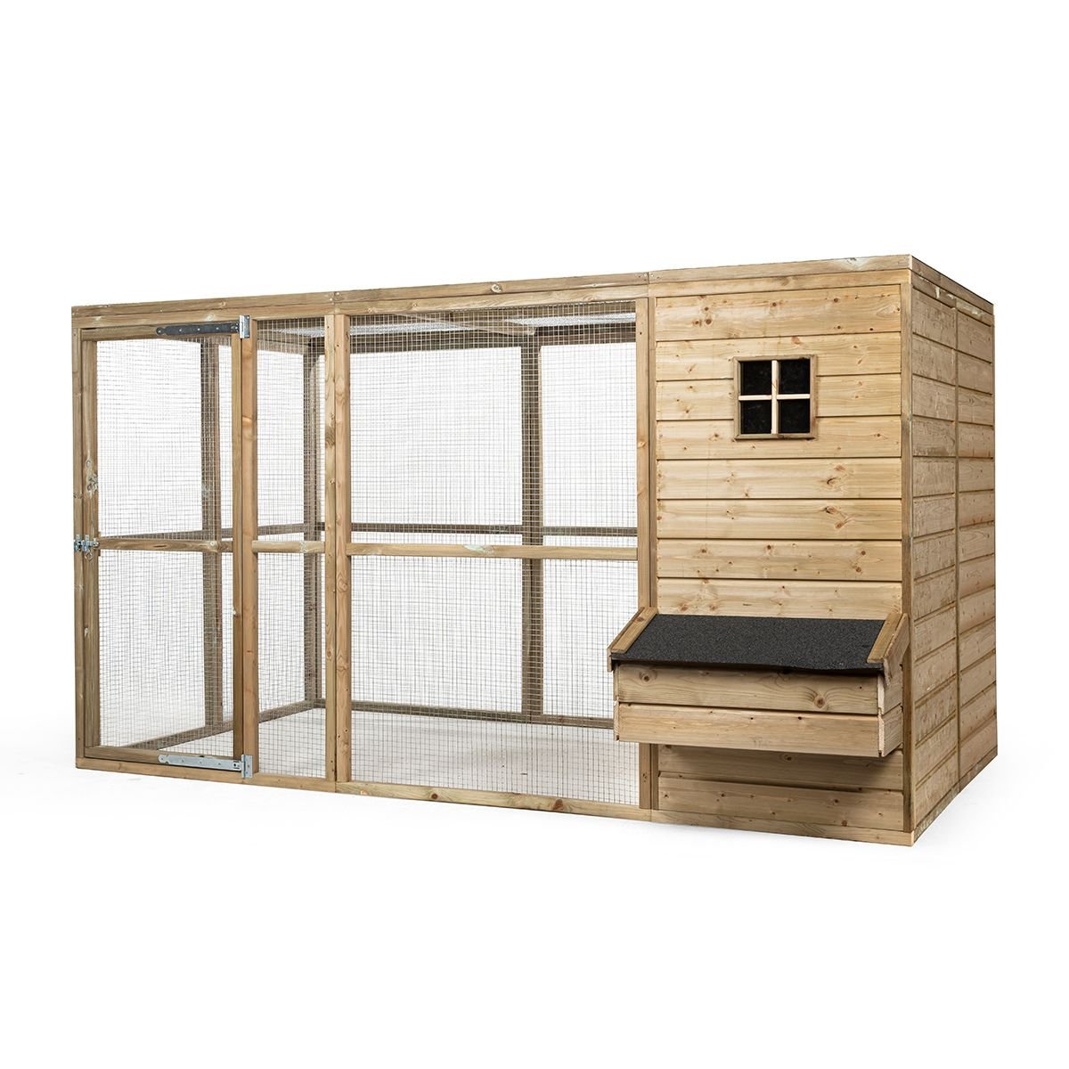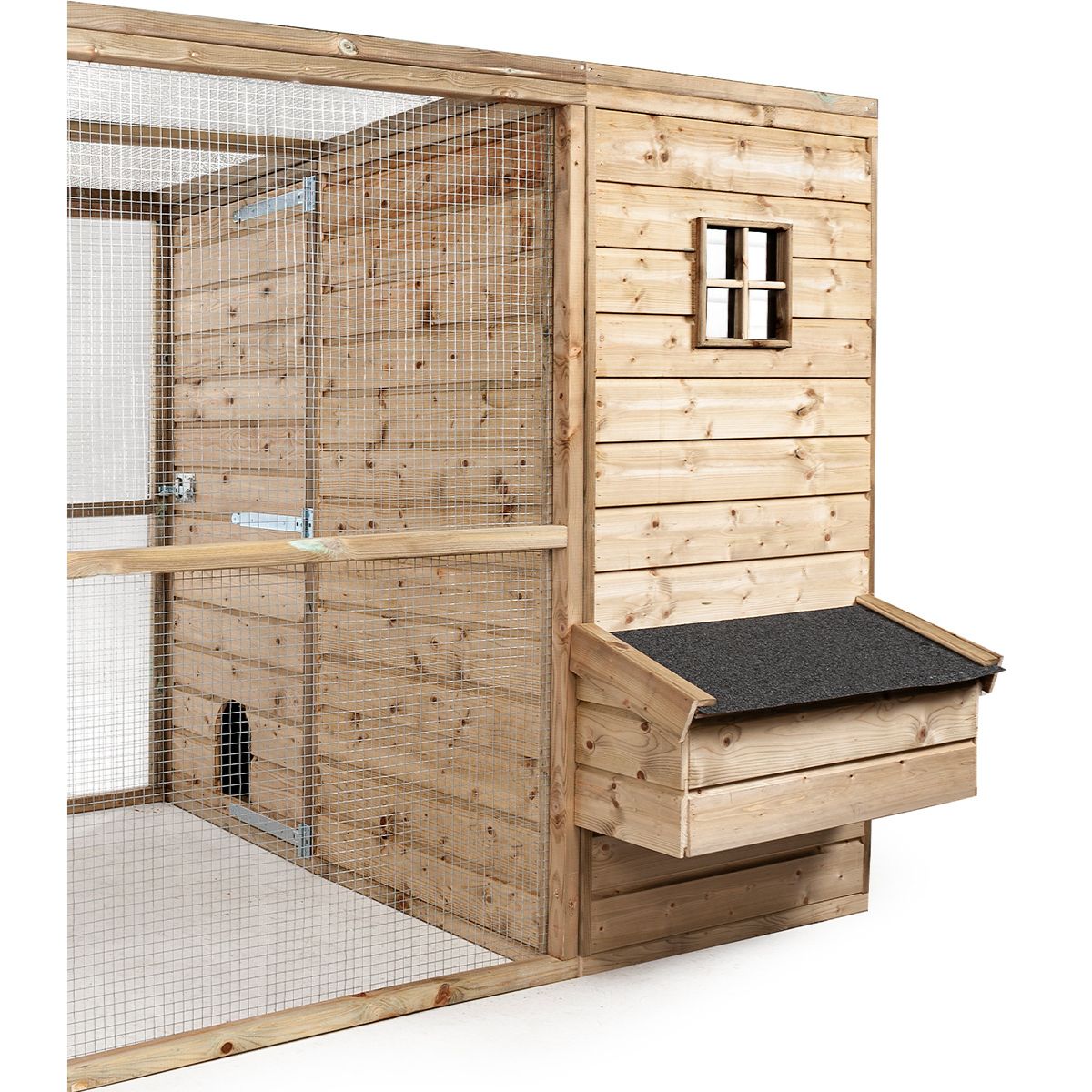 El diseño inteligente del corral no solo proporciona comodidad a sus animales, sino también facilidad de uso para usted. Gracias al nido fijo, no tendrá que preocuparse por encontrar huevos. El pasillo del refugio nocturno facilita el desplazamiento de los animales entre las zonas interior y exterior. Además, los herrajes galvanizados garantizan que todo permanezca bien cerrado, incluso con un uso frecuente.