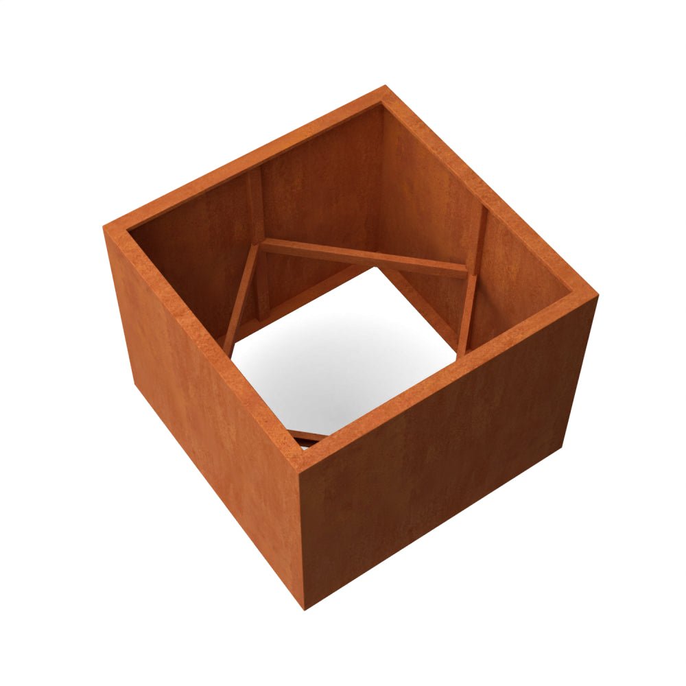Jardinera cuadrada de acero Corten con fondo, 60 x 60 x 60 cm